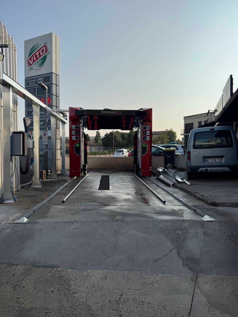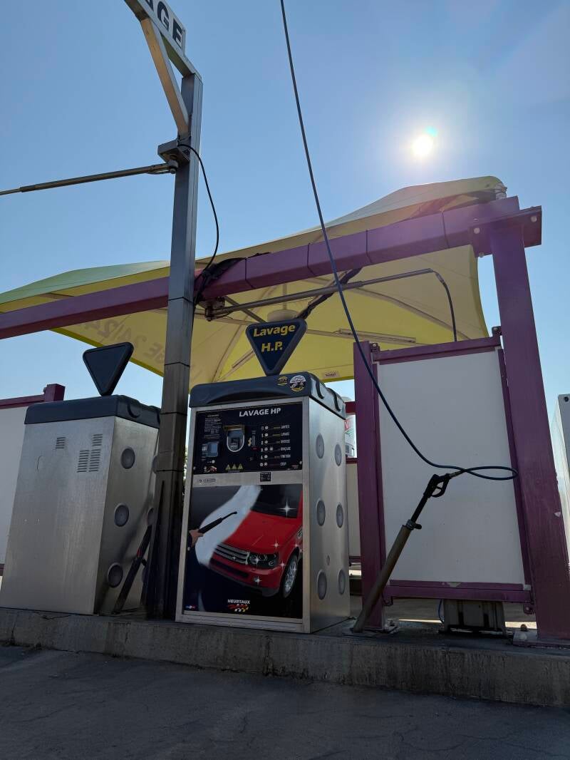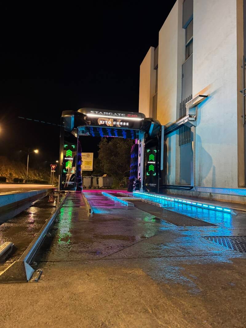 Installation d'une Borne Hyperjet Heurtaux sur la station Vito Aspretto sur Ajaccio. Avec option jante, brosse mousse, mousse basse pression, rinçage pression renforcée, lustrant et finition Full LED.